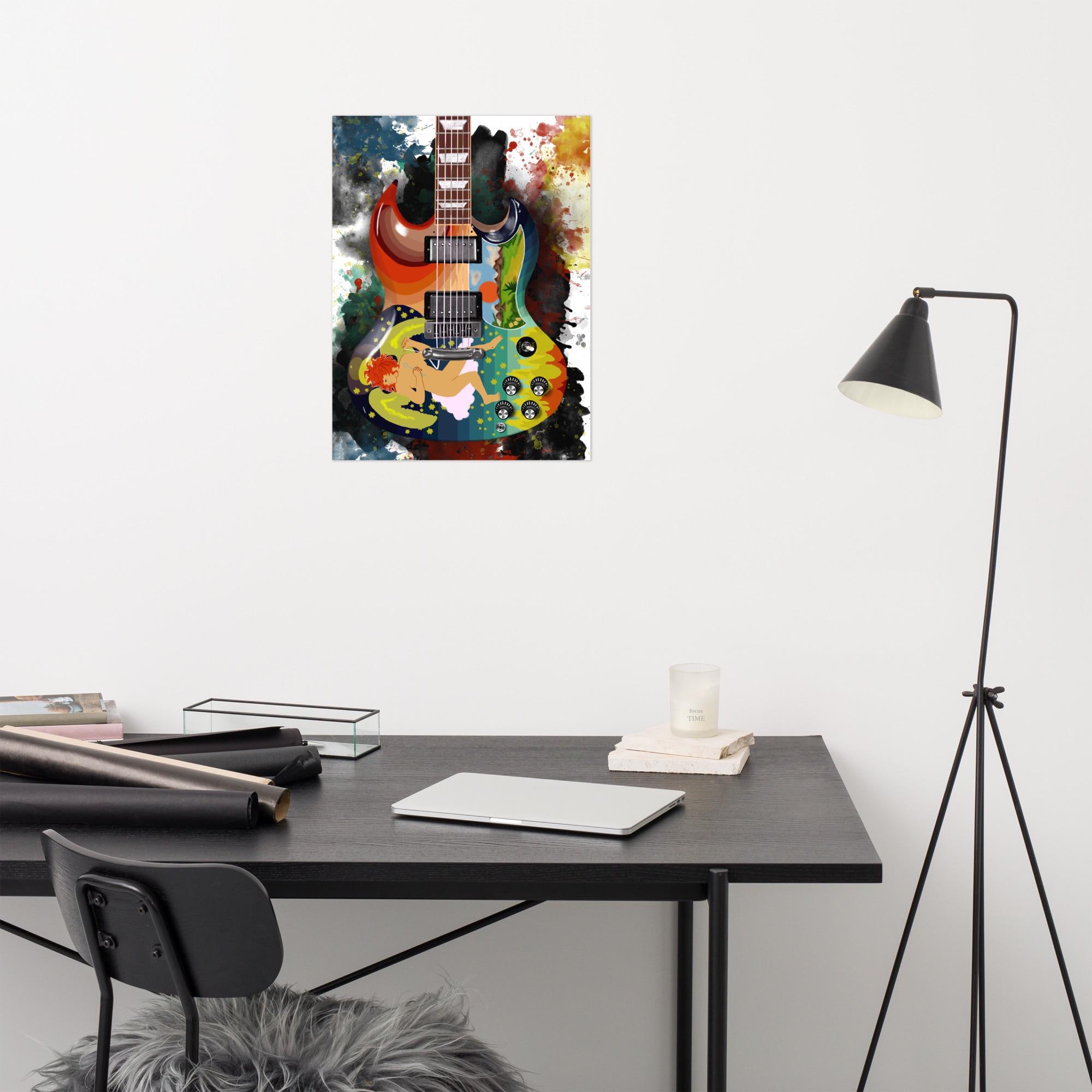 Crafted with the highest quality materials, my matte paper print boasts superior durability and longevity, ensuring that the artwork remains vibrant and captivating for years to come. The high-resolution printing technique captures every nuance of the original painting, from the graceful curves of the electric guitar to the subtle textures of the matte paper.