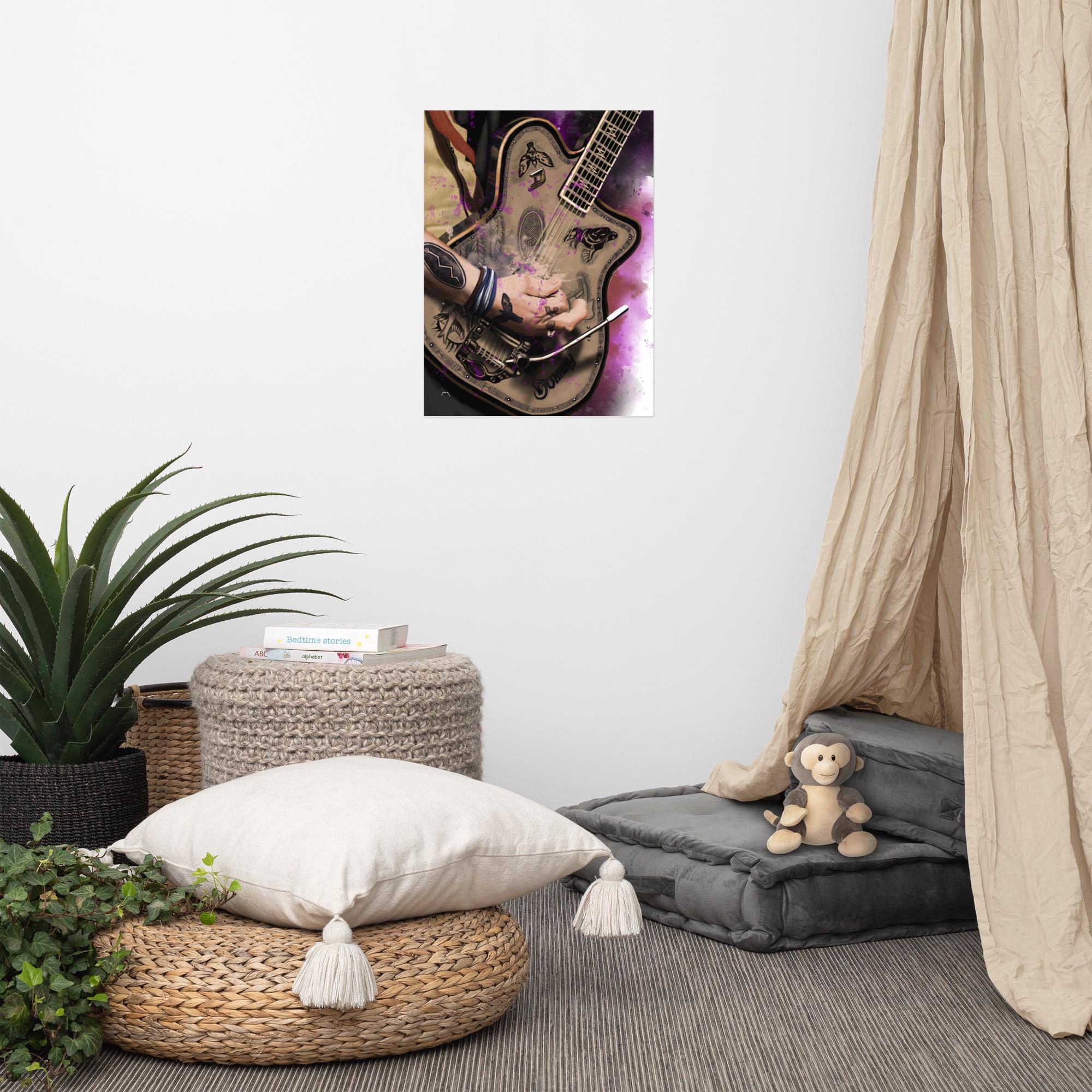 Crafted with the highest quality materials, my matte paper print boasts superior durability and longevity, ensuring that the artwork remains vibrant and captivating for years to come. The high-resolution printing technique captures every nuance of the original painting, from the graceful curves of the electric guitar to the subtle textures of the matte paper.