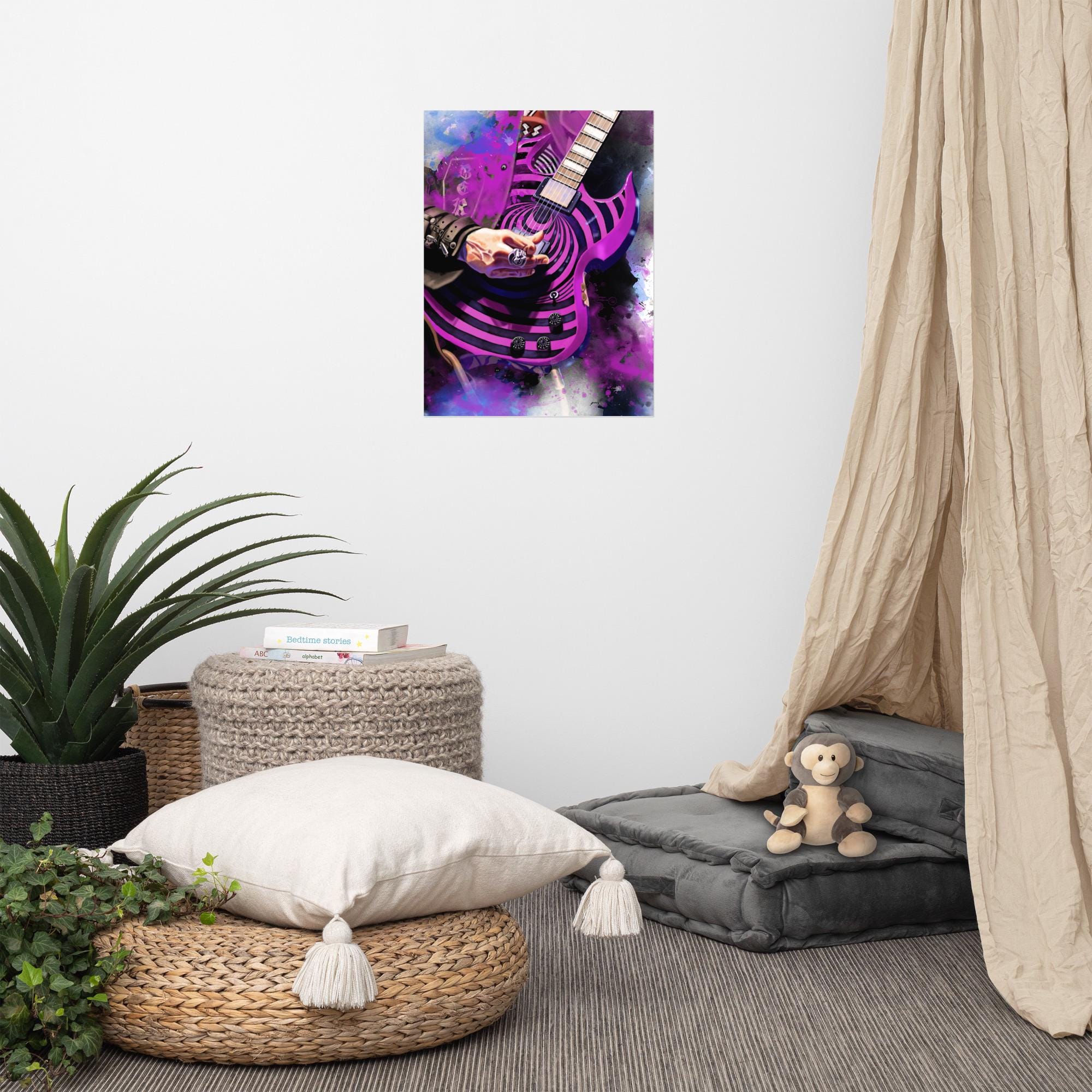 Crafted with the highest quality materials, my matte paper print boasts superior durability and longevity, ensuring that the artwork remains vibrant and captivating for years to come. The high-resolution printing technique captures every nuance of the original painting, from the graceful curves of the electric guitar to the subtle textures of the matte paper.