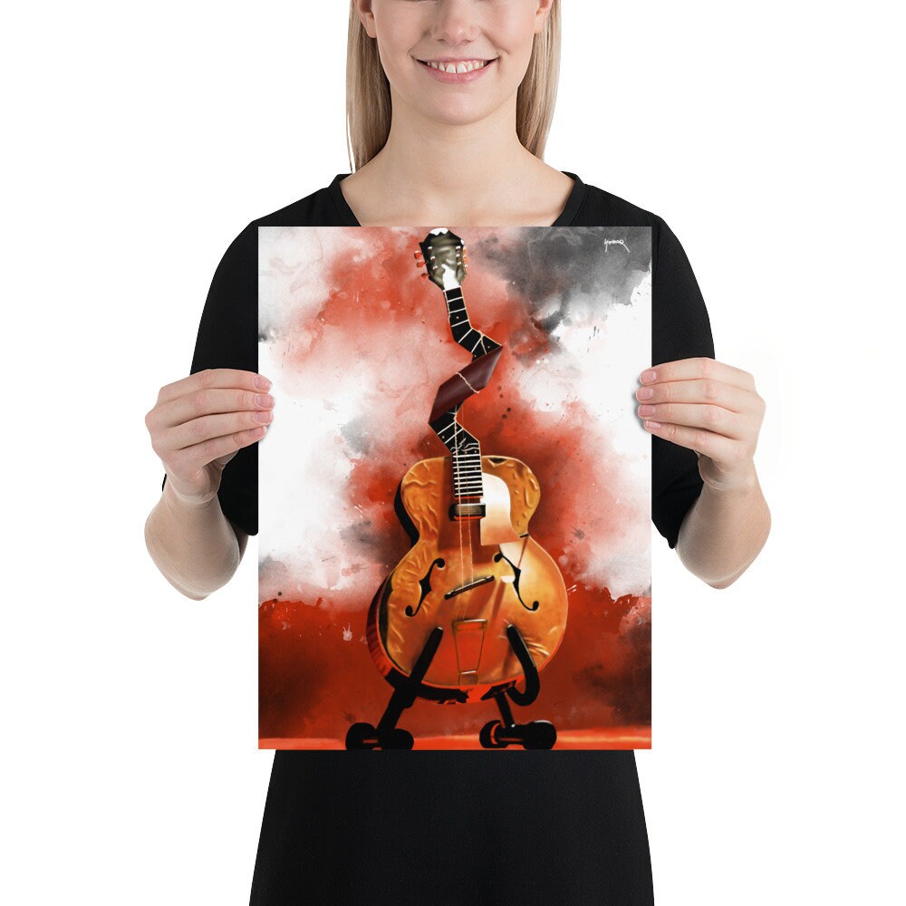 Crafted with the highest quality materials, my matte paper print boasts superior durability and longevity, ensuring that the artwork remains vibrant and captivating for years to come. The high-resolution printing technique captures every nuance of the original painting, from the graceful curves of the electric guitar to the subtle textures of the matte paper.