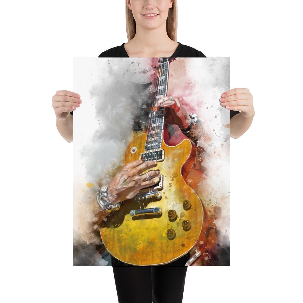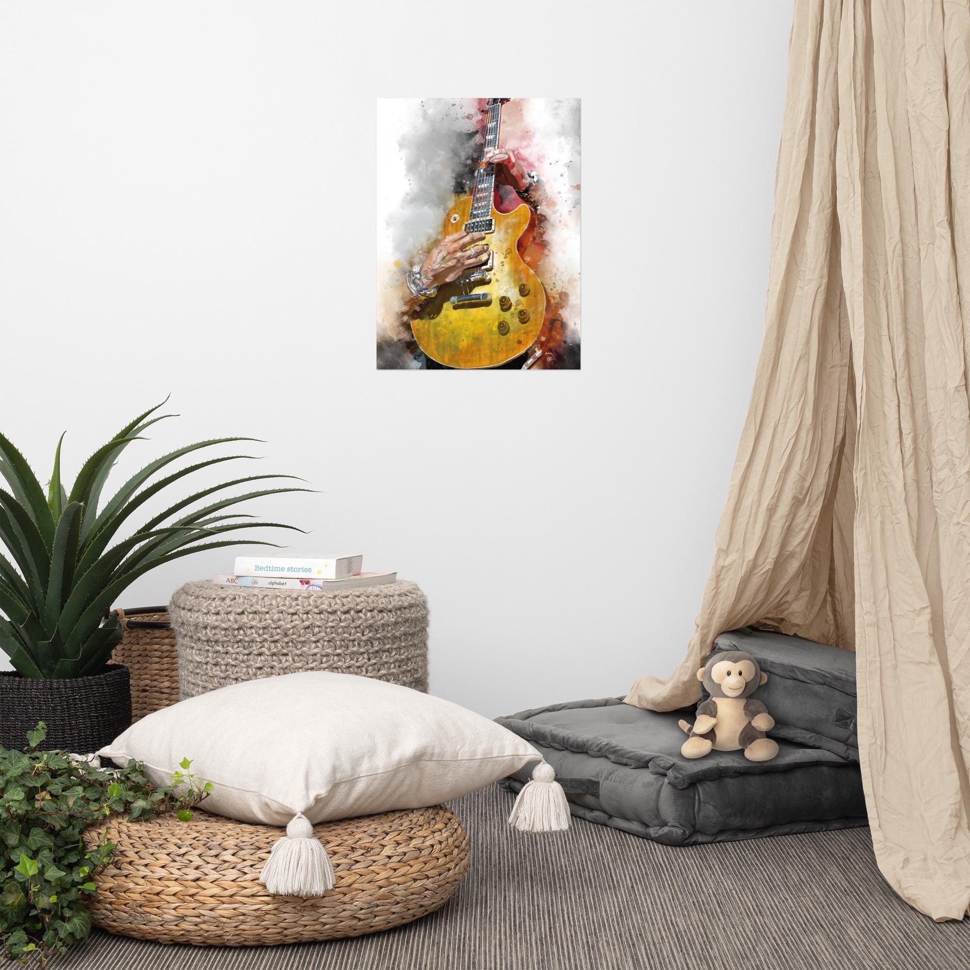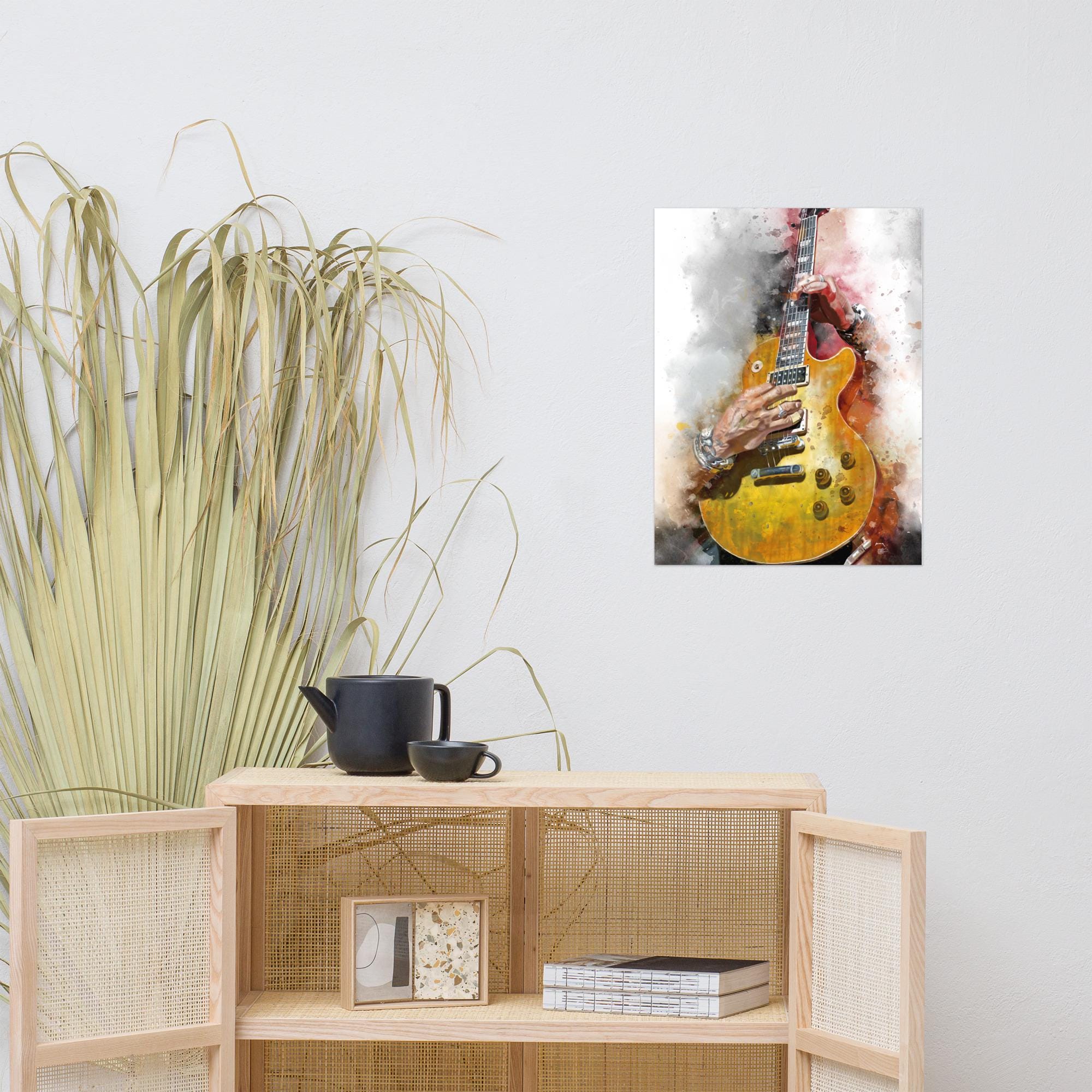 Crafted with the highest quality materials, my matte paper print boasts superior durability and longevity, ensuring that the artwork remains vibrant and captivating for years to come. The high-resolution printing technique captures every nuance of the original painting, from the graceful curves of the electric guitar to the subtle textures of the matte paper.
