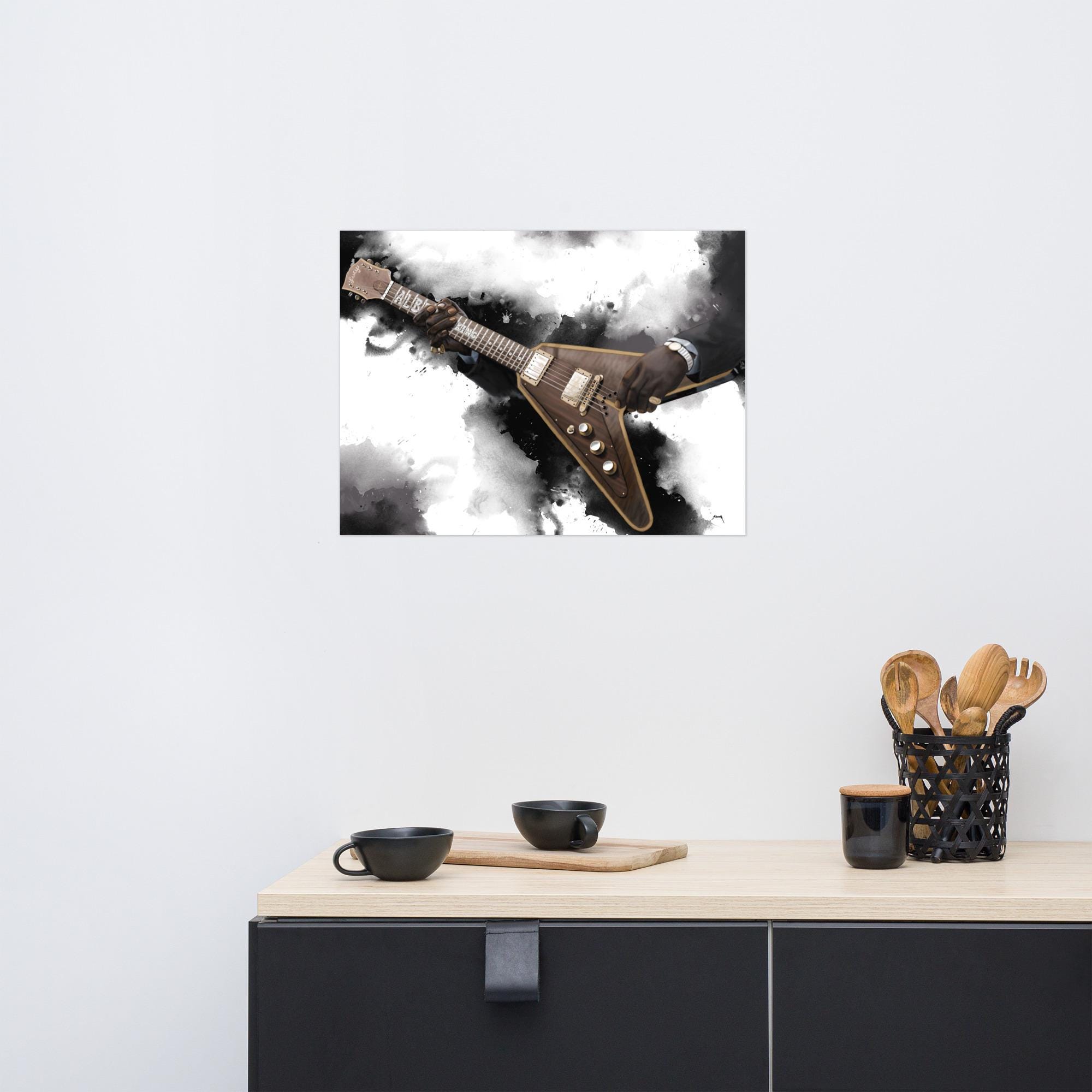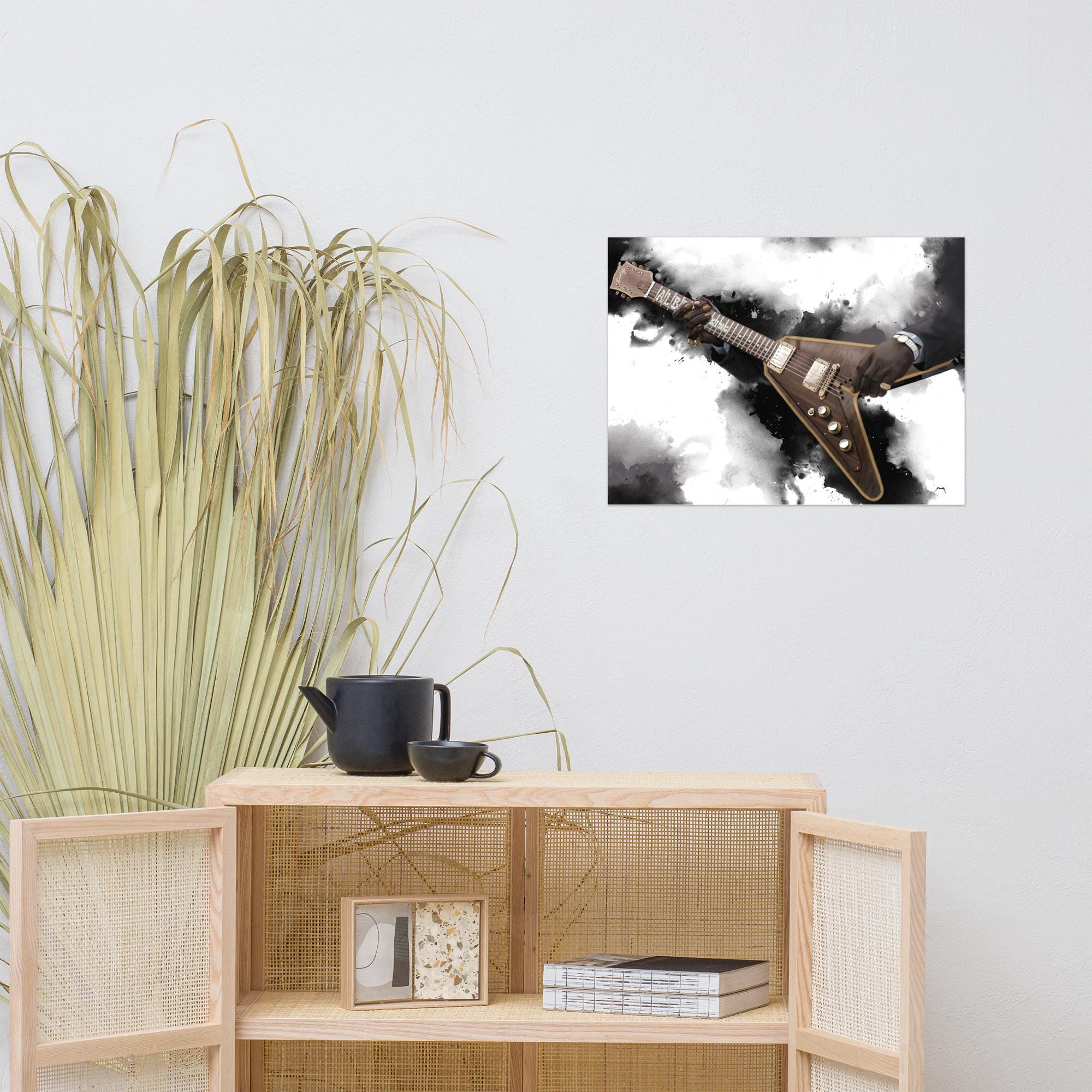 Crafted with the highest quality materials, my matte paper print boasts superior durability and longevity, ensuring that the artwork remains vibrant and captivating for years to come. The high-resolution printing technique captures every nuance of the original painting, from the graceful curves of the electric guitar to the subtle textures of the matte paper.