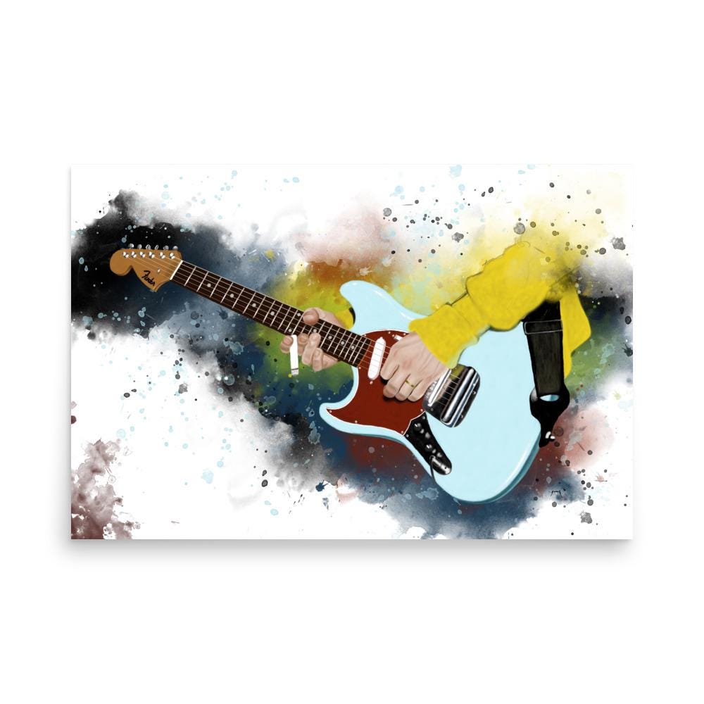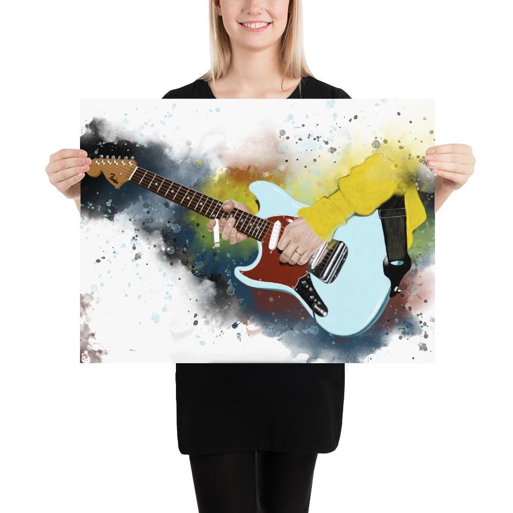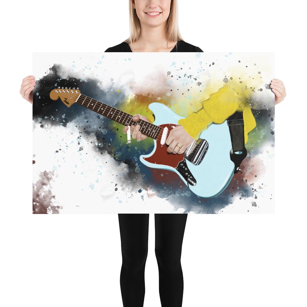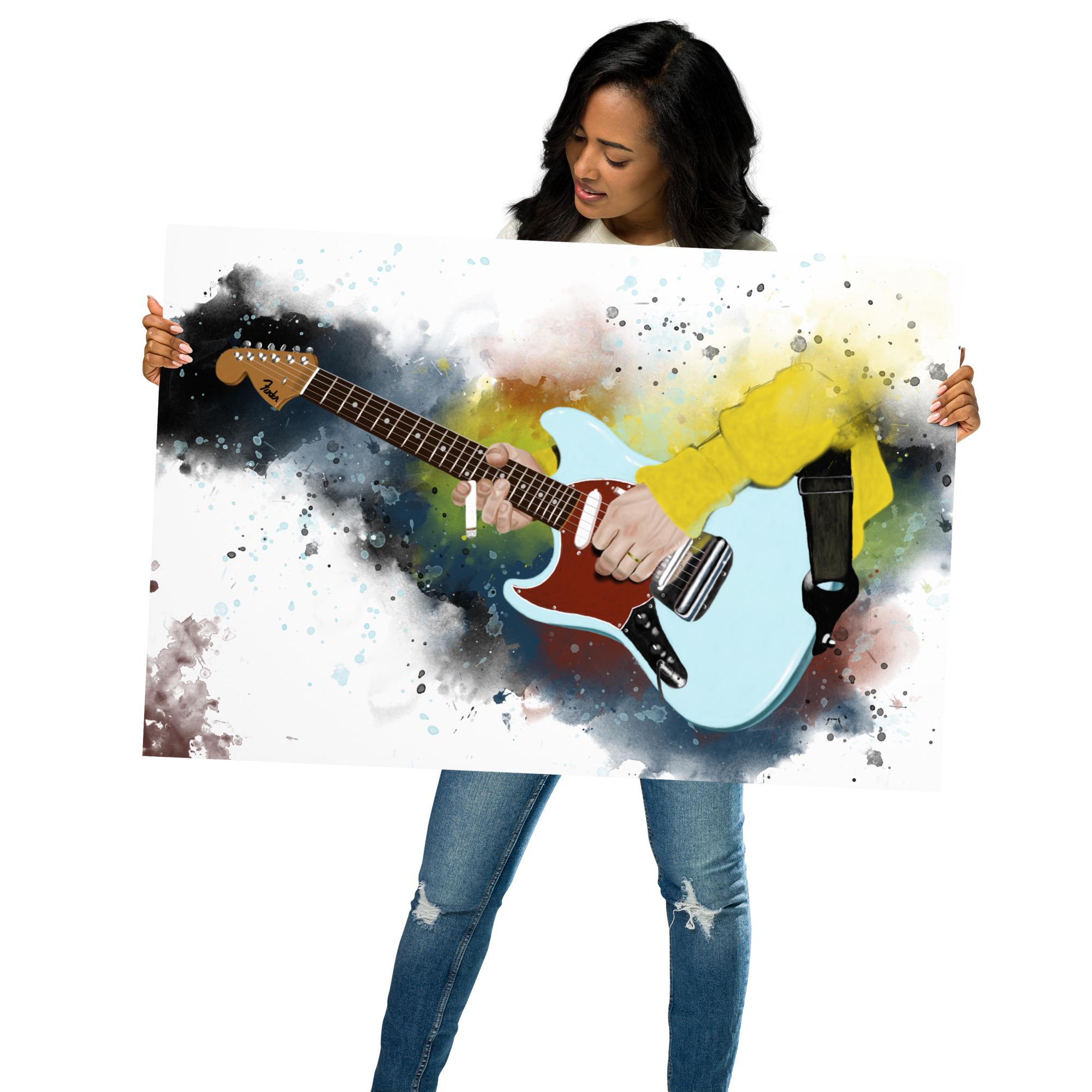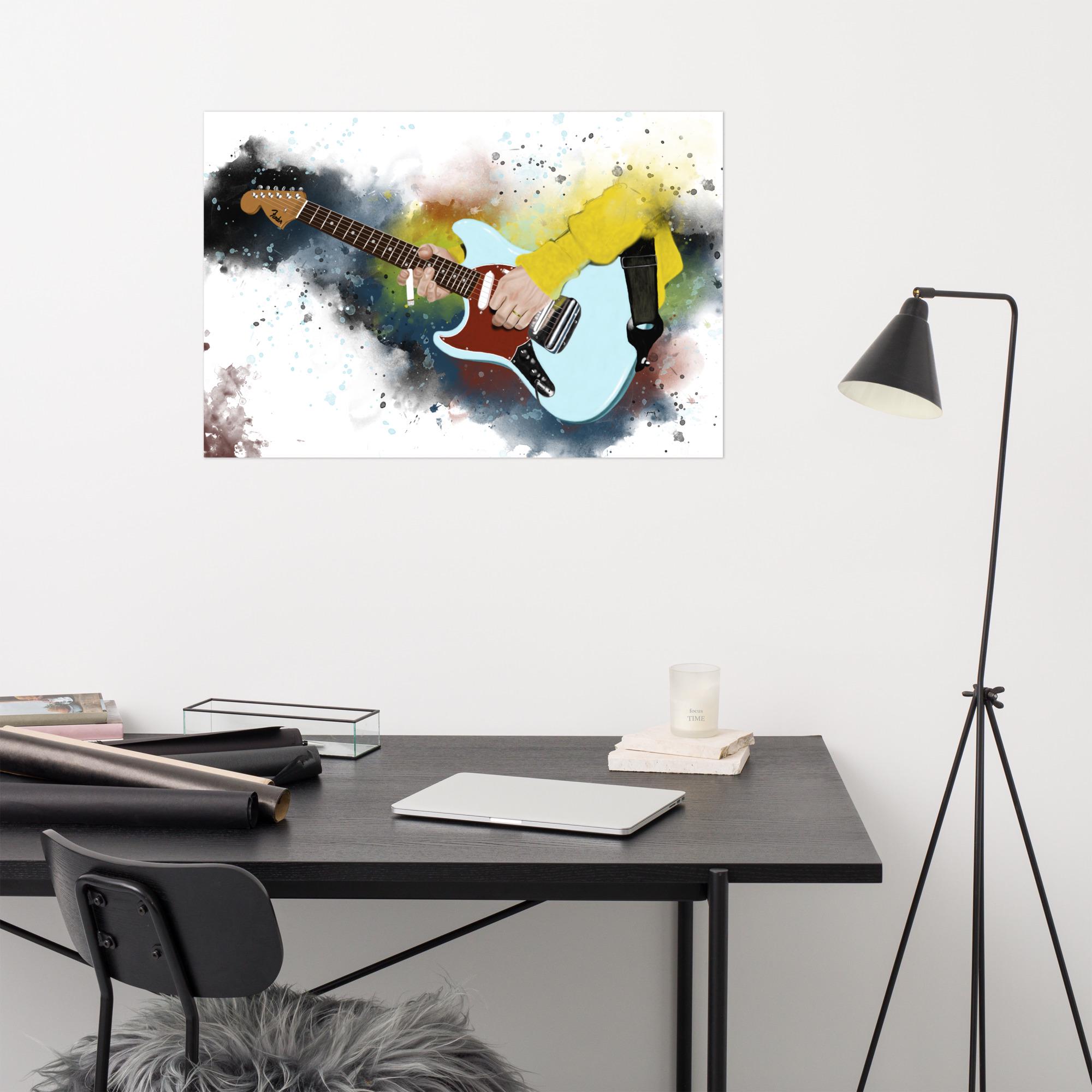 Crafted with the highest quality materials, my matte paper print boasts superior durability and longevity, ensuring that the artwork remains vibrant and captivating for years to come. The high-resolution printing technique captures every nuance of the original painting, from the graceful curves of the electric guitar to the subtle textures of the matte paper.