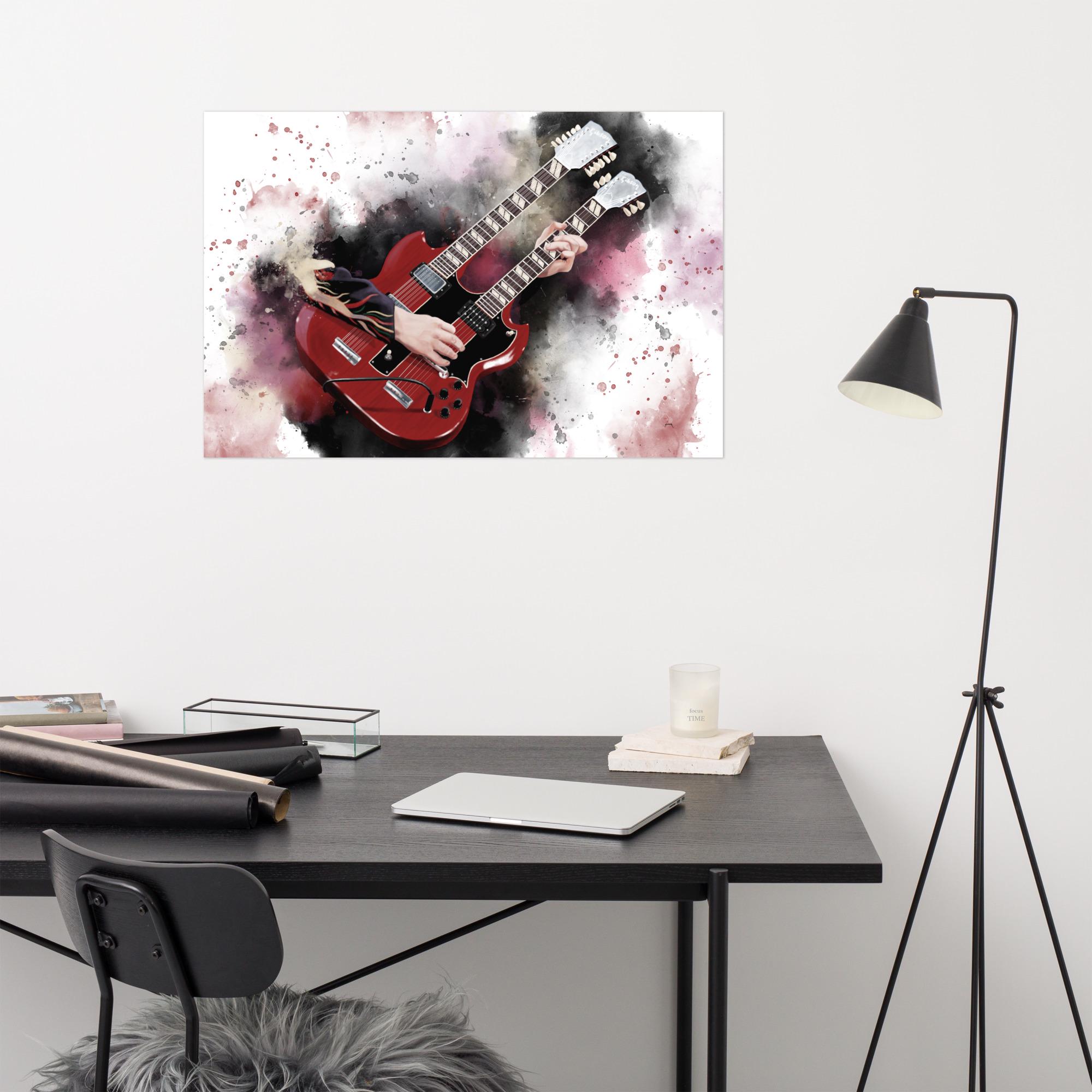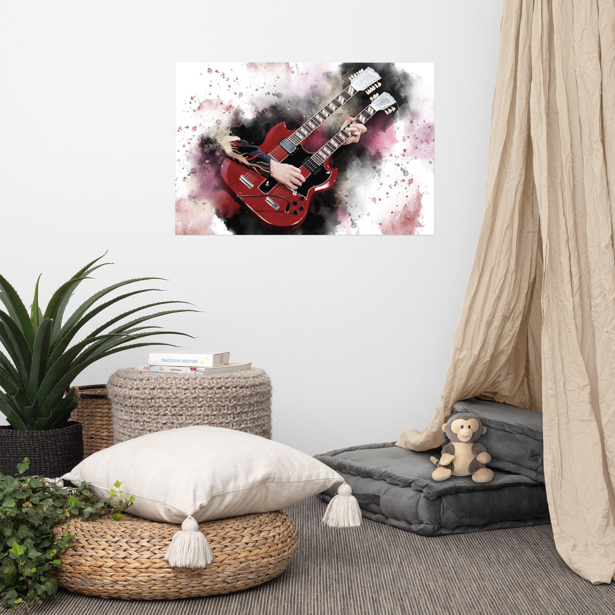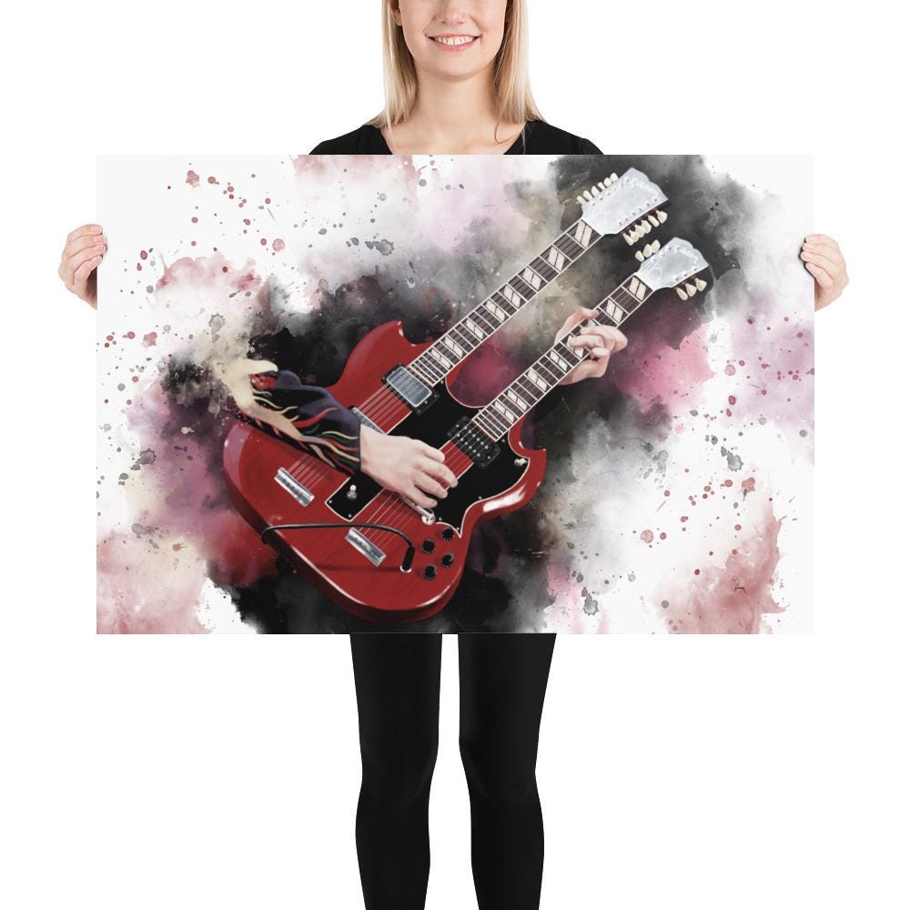 Crafted with the highest quality materials, my matte paper print boasts superior durability and longevity, ensuring that the artwork remains vibrant and captivating for years to come. The high-resolution printing technique captures every nuance of the original painting, from the graceful curves of the electric guitar to the subtle textures of the matte paper.