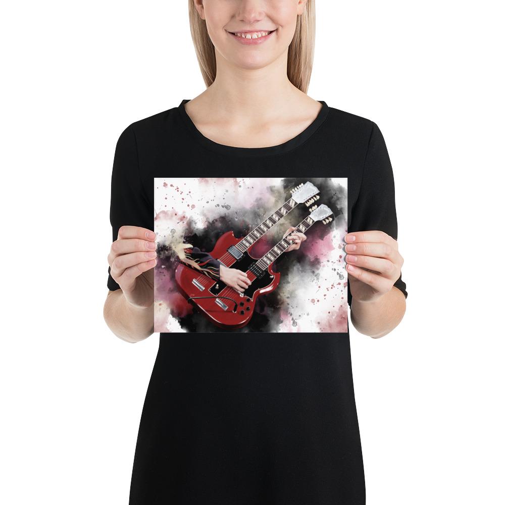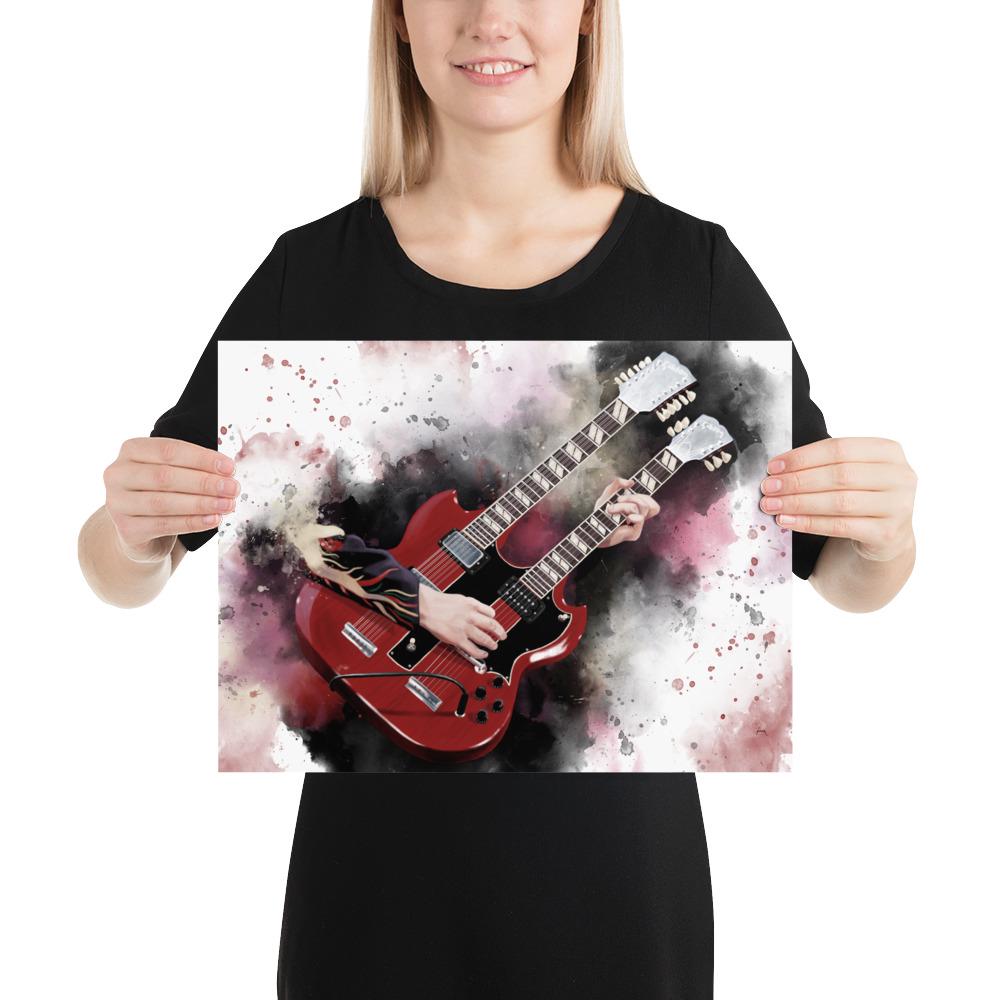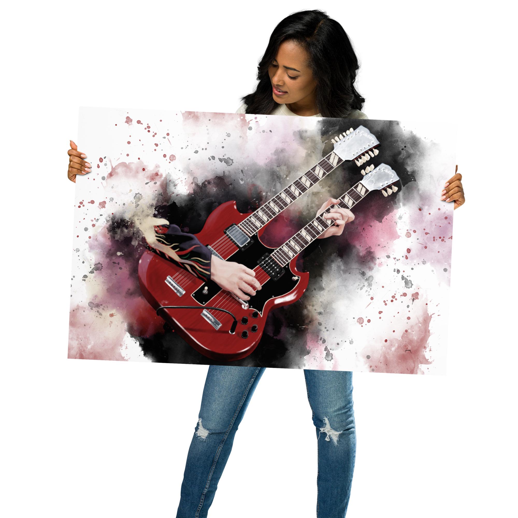 Crafted with the highest quality materials, my matte paper print boasts superior durability and longevity, ensuring that the artwork remains vibrant and captivating for years to come. The high-resolution printing technique captures every nuance of the original painting, from the graceful curves of the electric guitar to the subtle textures of the matte paper.