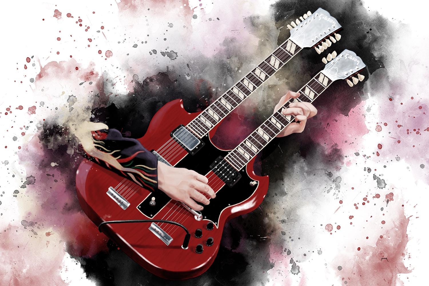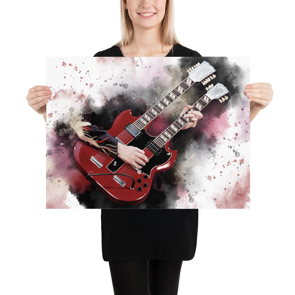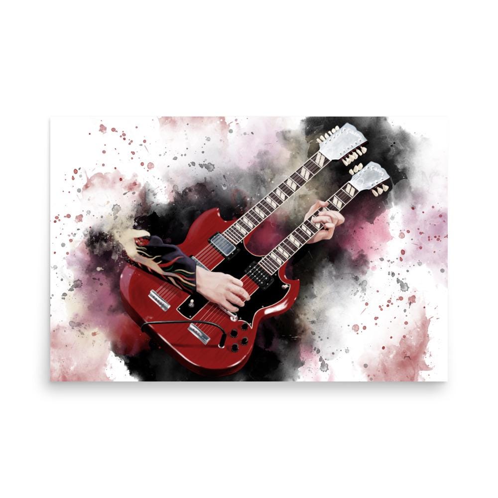 Double Neck Electric Guitar Wall Art, Painting 24x36"