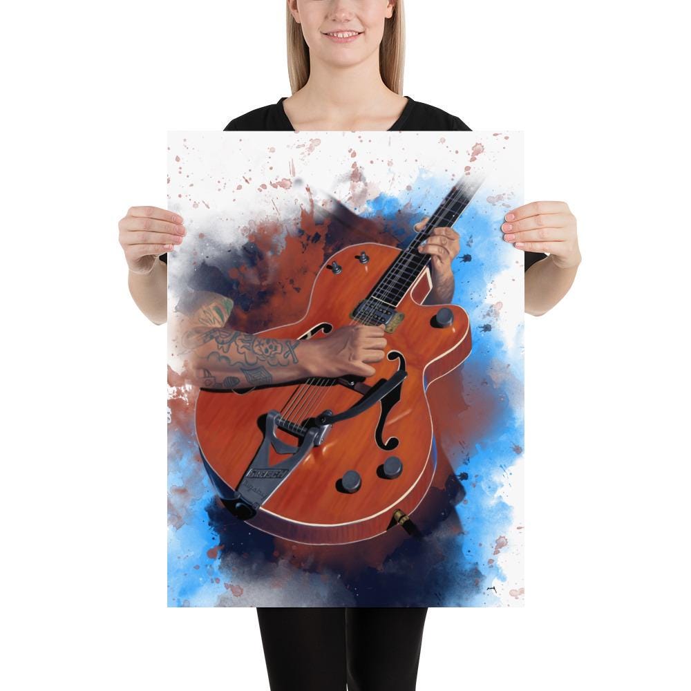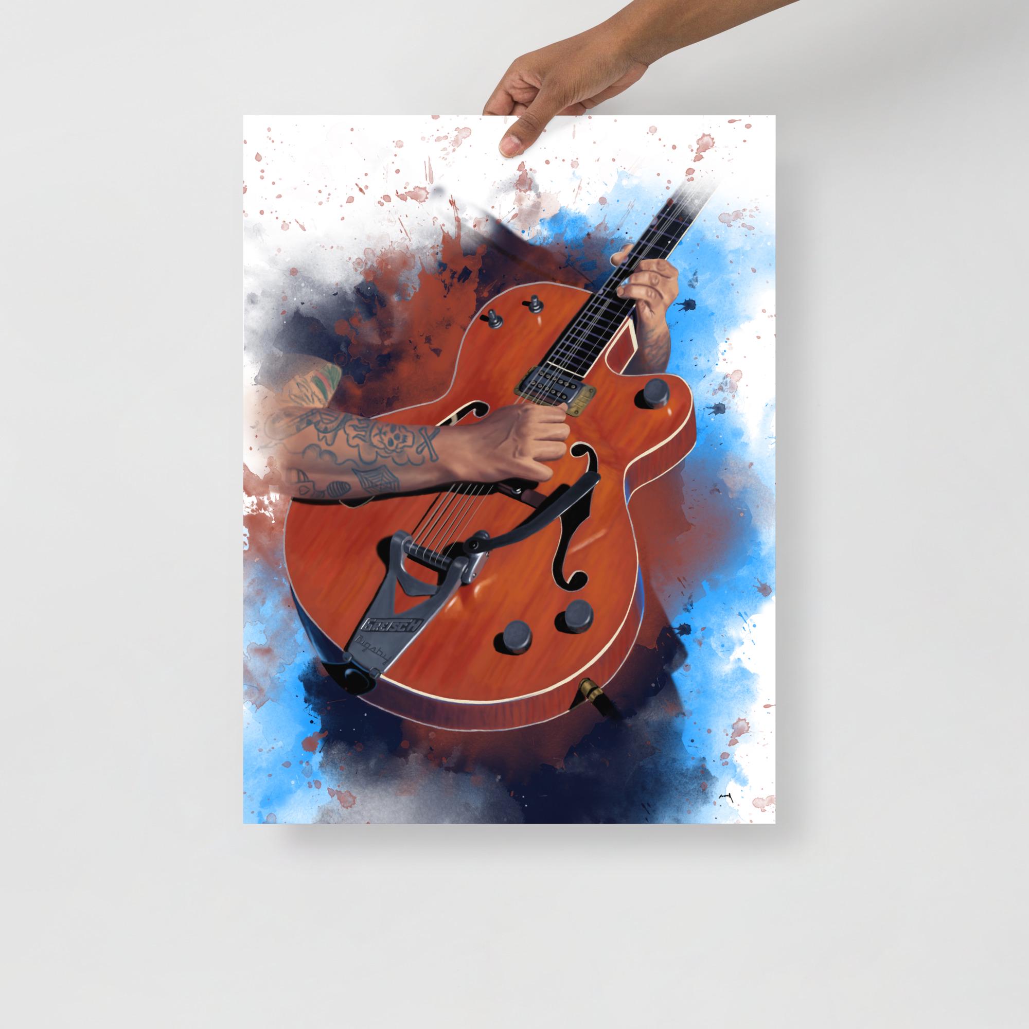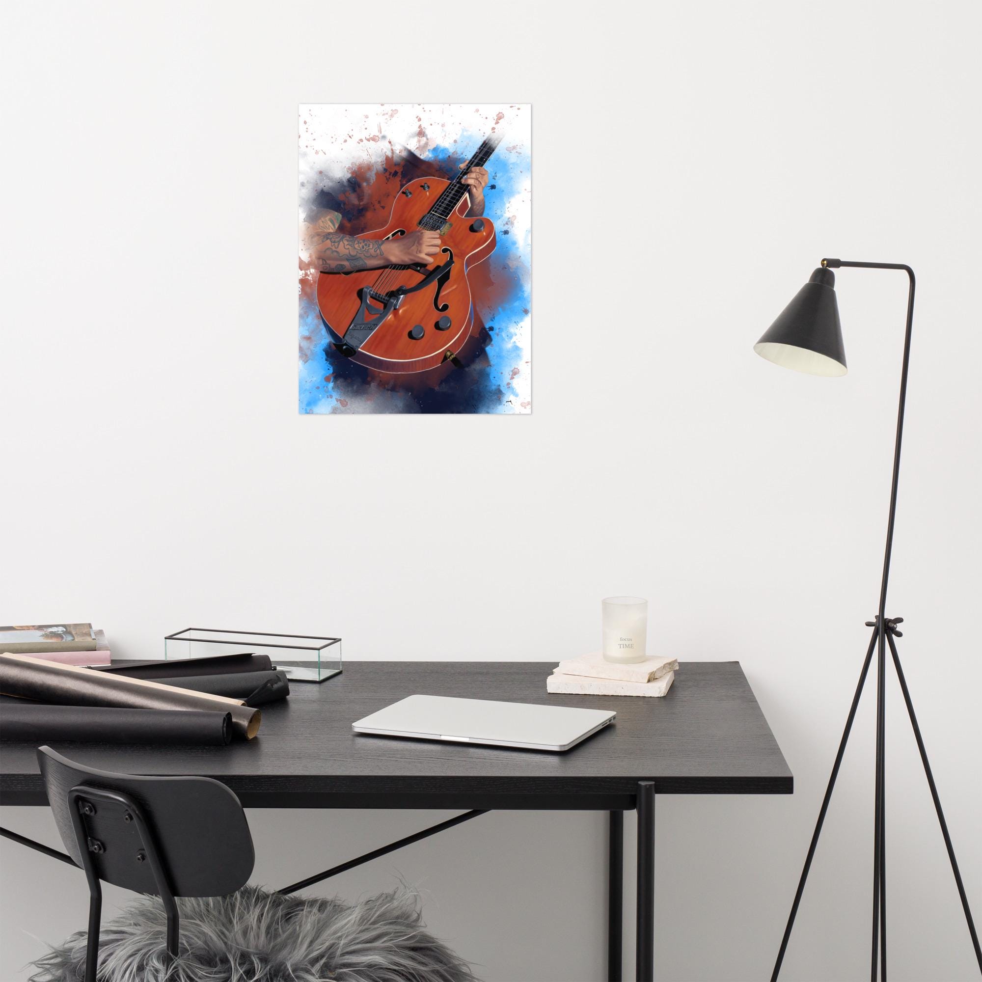 Crafted with the highest quality materials, my matte paper print boasts superior durability and longevity, ensuring that the artwork remains vibrant and captivating for years to come. The high-resolution printing technique captures every nuance of the original painting, from the graceful curves of the electric guitar to the subtle textures of the matte paper.