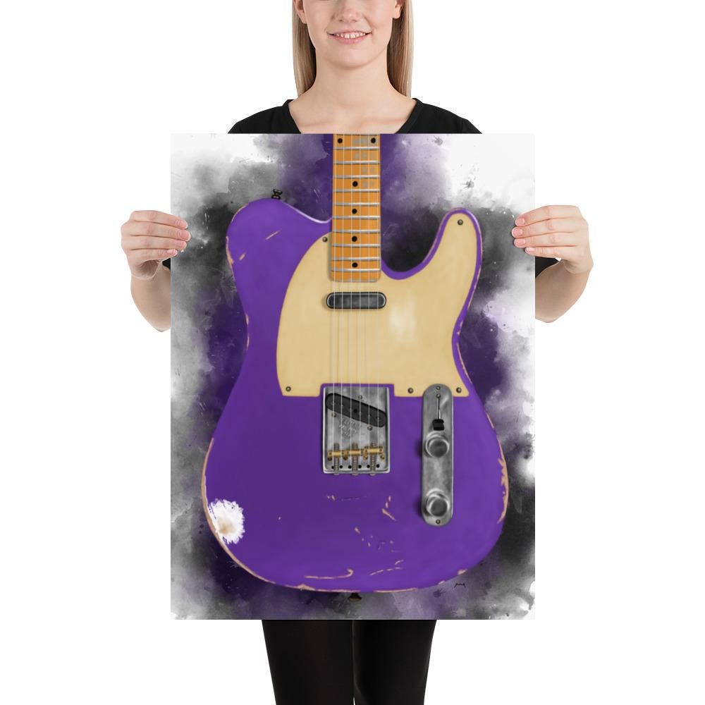 Purple Electric Guitar Art Print: Music Room Decor (24x36)