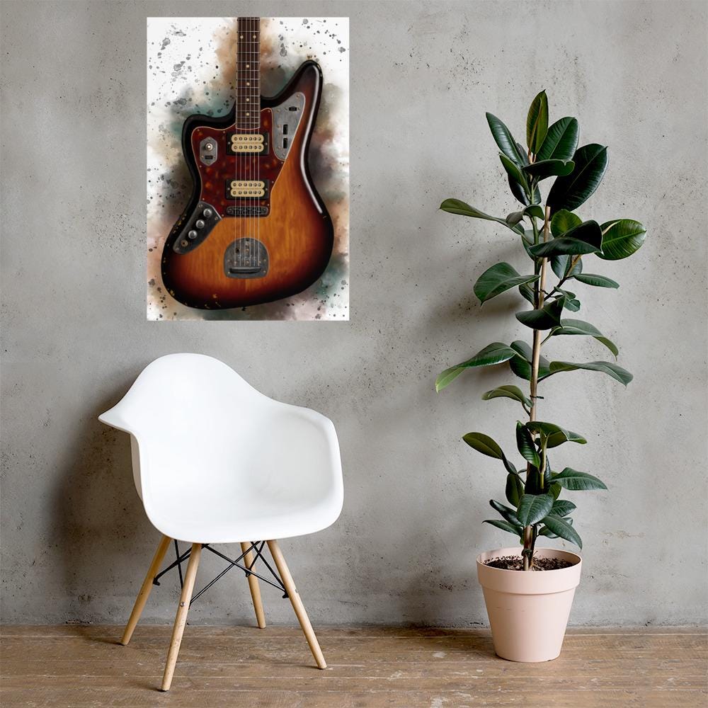 Crafted with the highest quality materials, my matte paper print boasts superior durability and longevity, ensuring that the artwork remains vibrant and captivating for years to come. The high-resolution printing technique captures every nuance of the original painting, from the graceful curves of the electric guitar to the subtle textures of the matte paper.