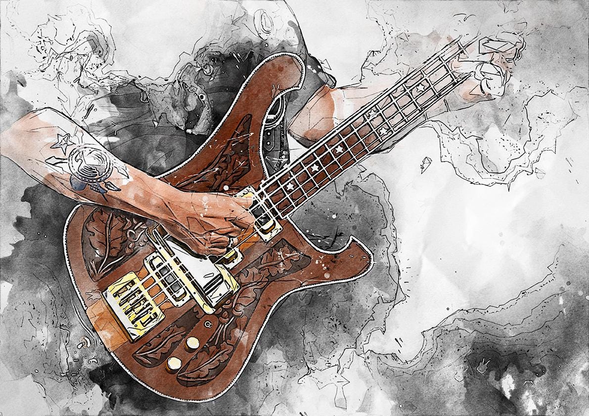 Lemmy's Electric Bass Guitar Digital Painting 18x24"