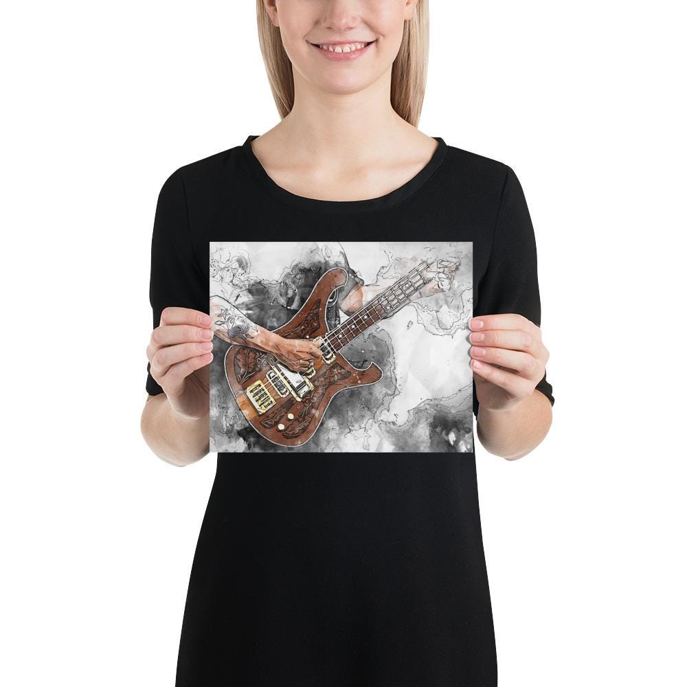 Crafted with the highest quality materials, my matte paper print boasts superior durability and longevity, ensuring that the artwork remains vibrant and captivating for years to come. The high-resolution printing technique captures every nuance of the original painting, from the graceful curves of the electric guitar to the subtle textures of the matte paper.