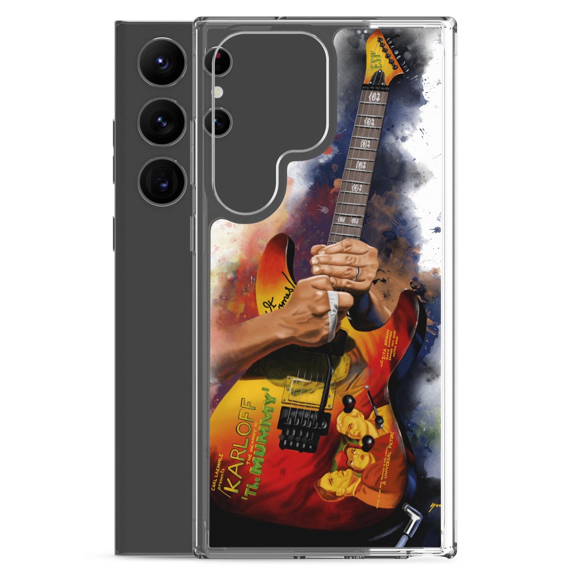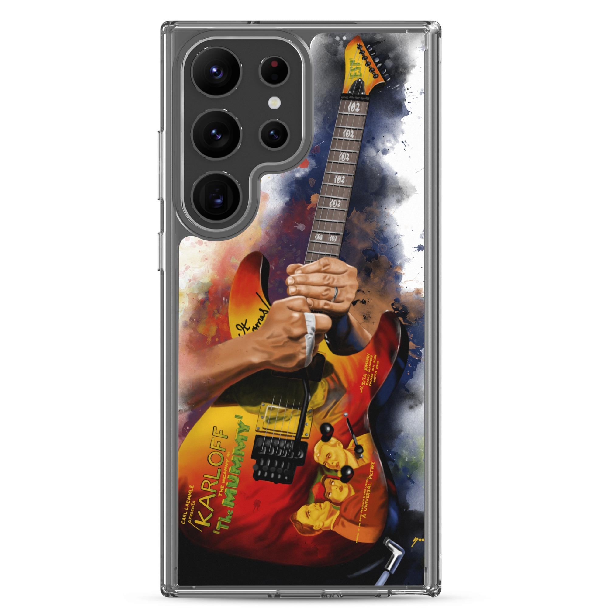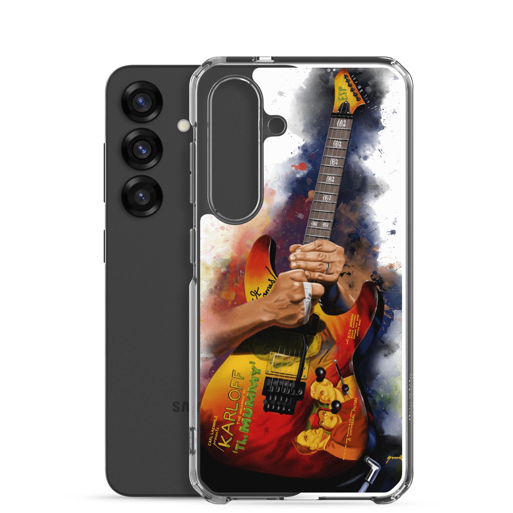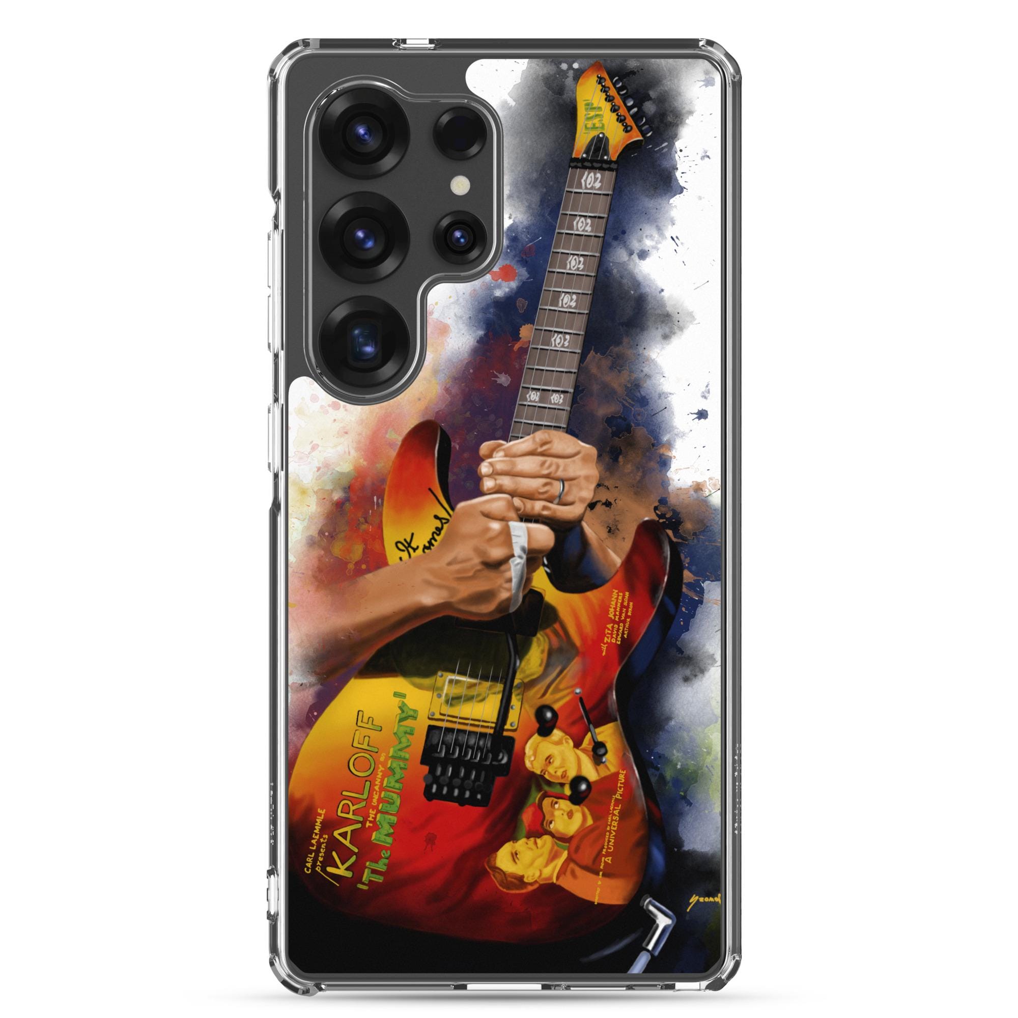 Hand-Painted Samsung Phone Cases with Mummy Guitar Art