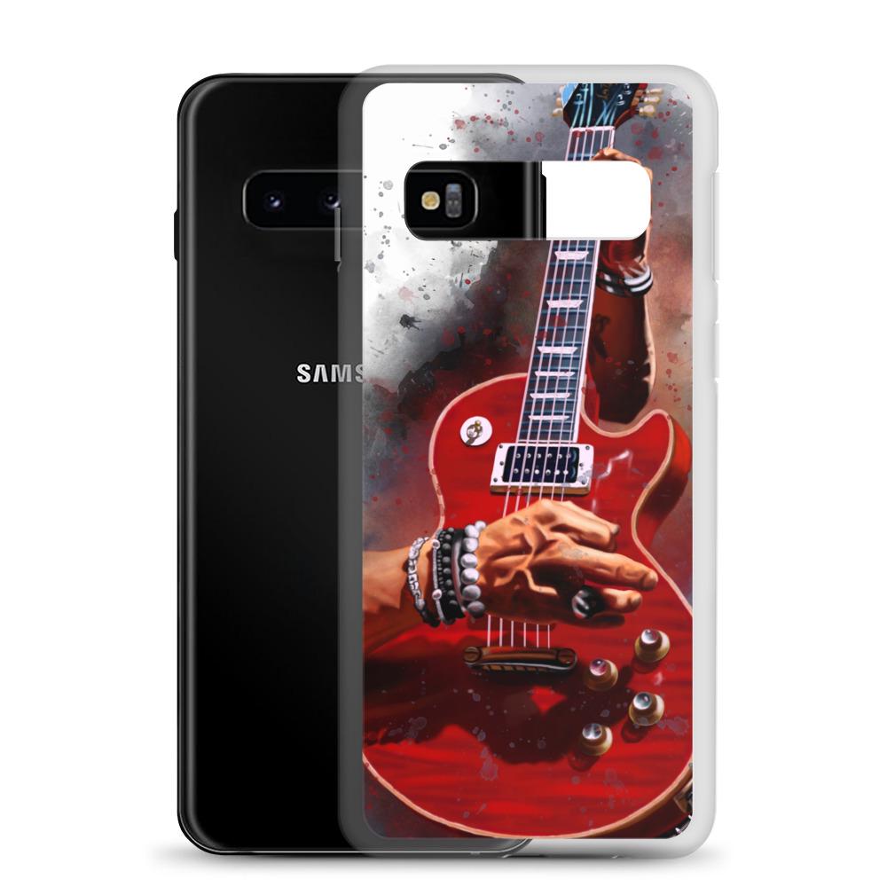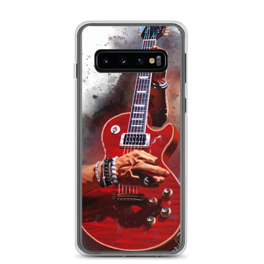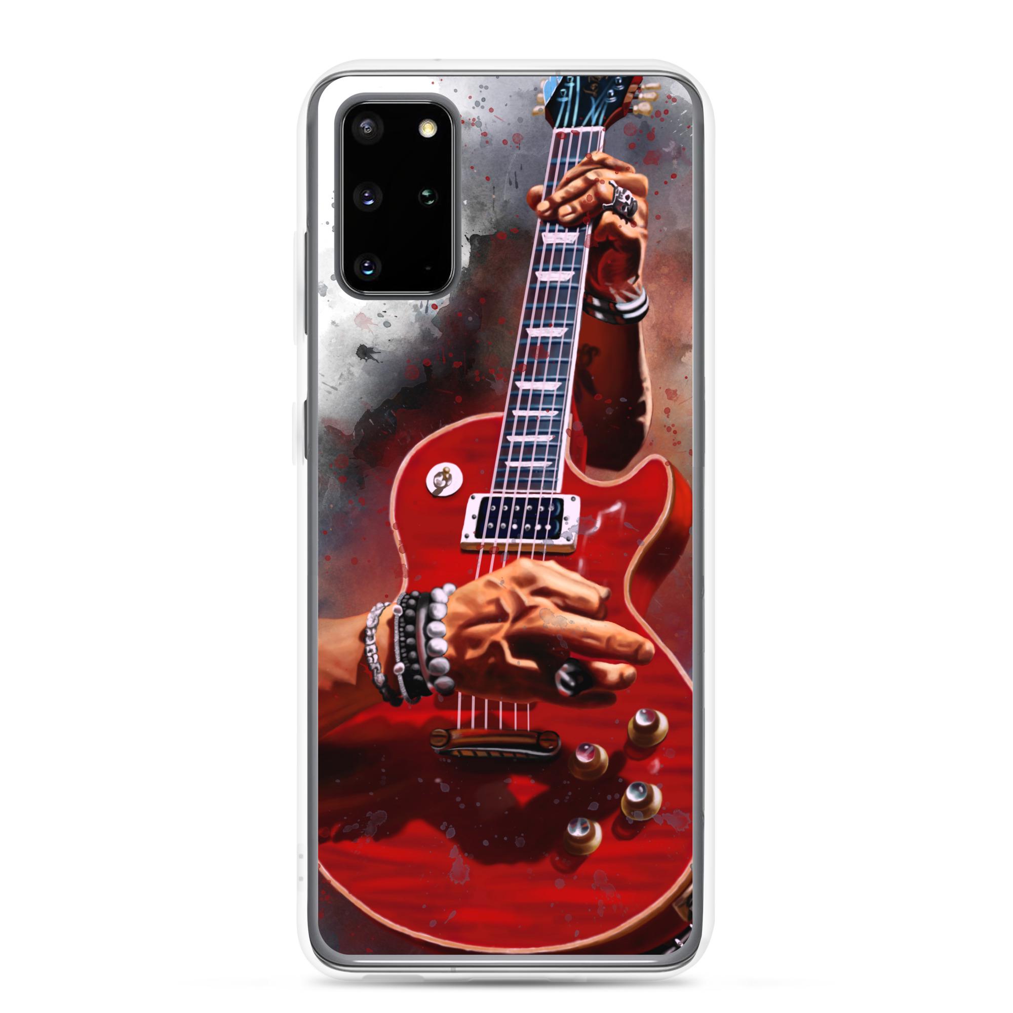 Hand-Painted Samsung Phone Cases with Fire Red Guitar Art