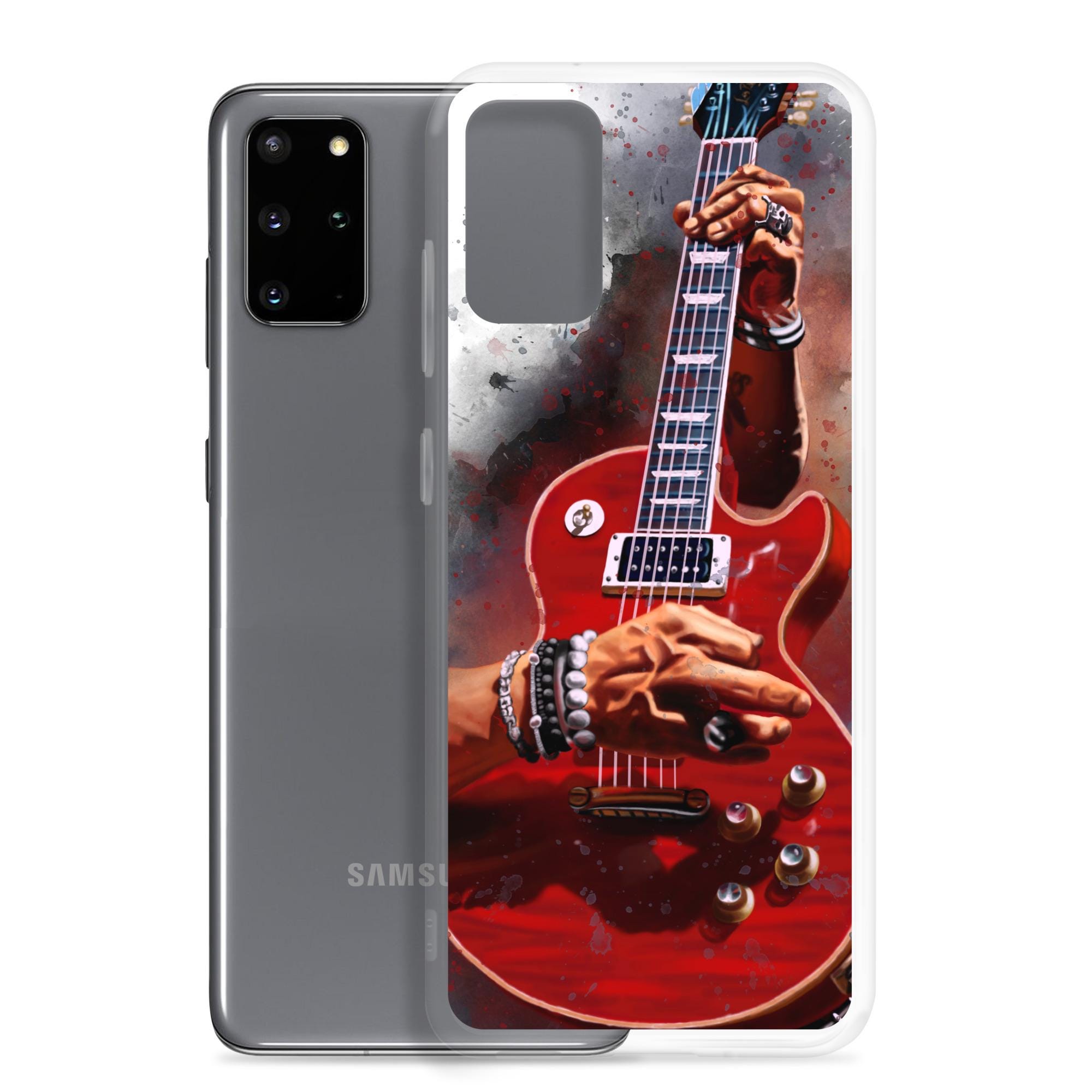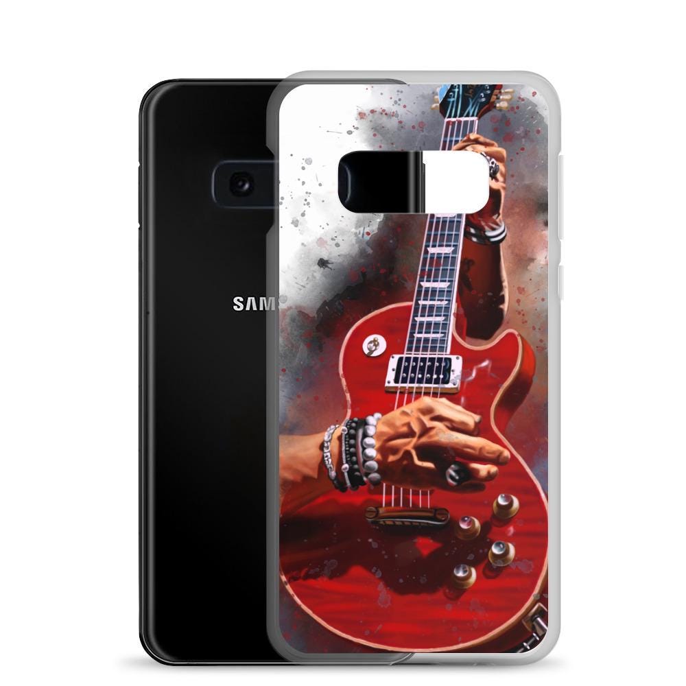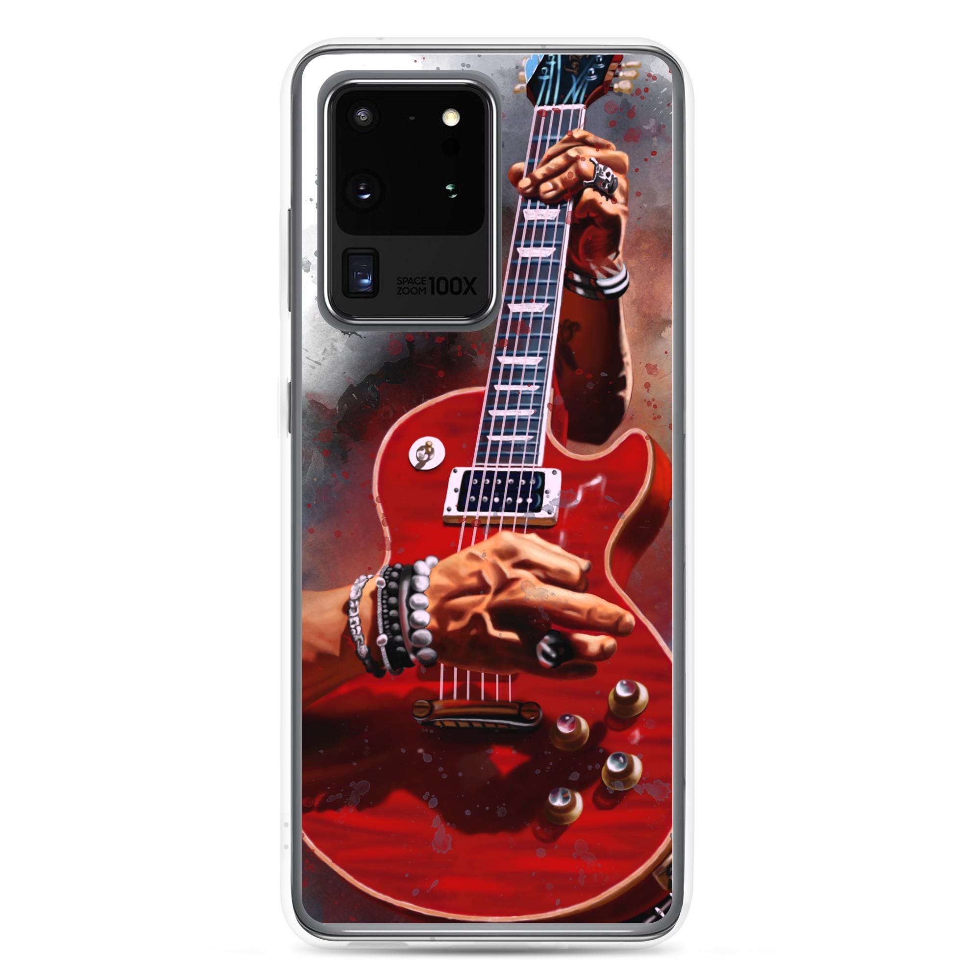 Hand-Painted Samsung Phone Cases with Fire Red Guitar Art
