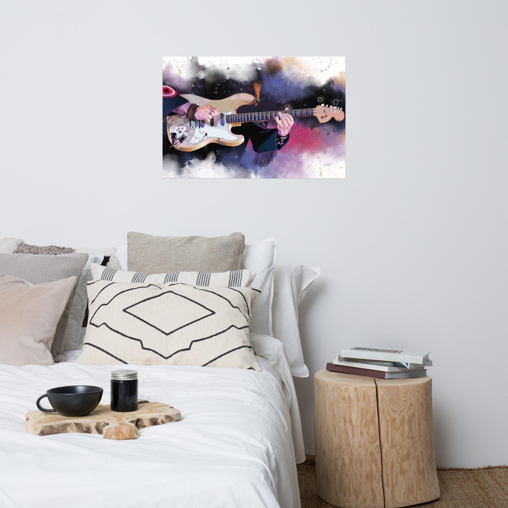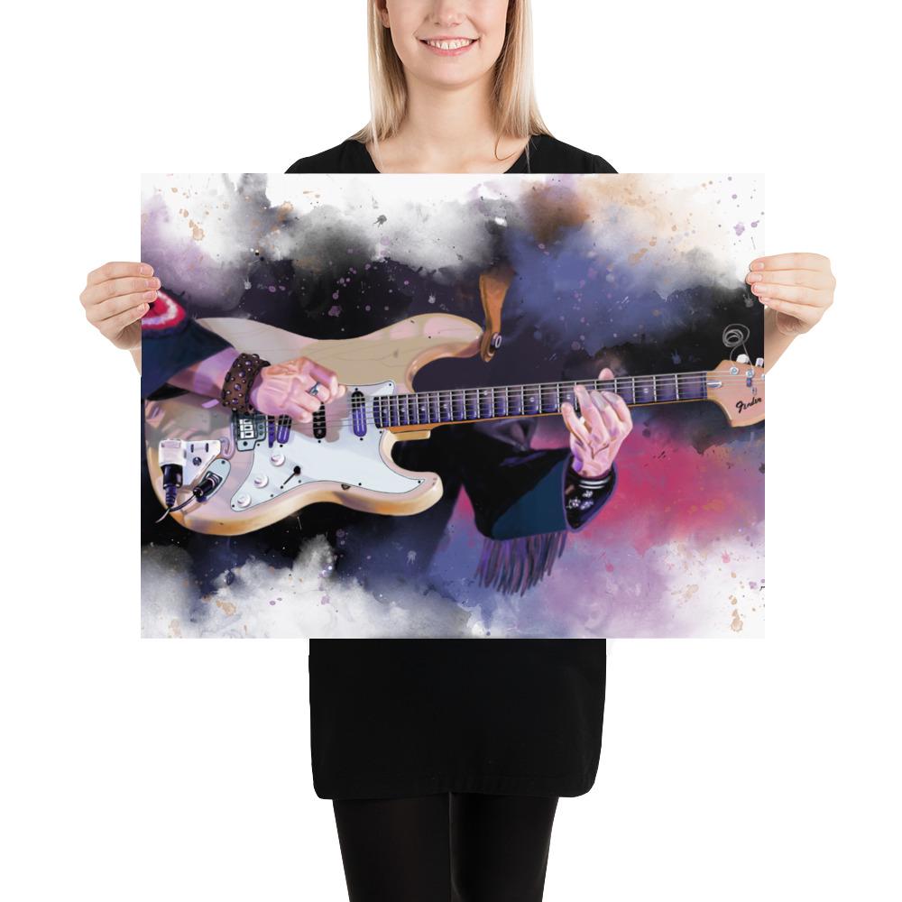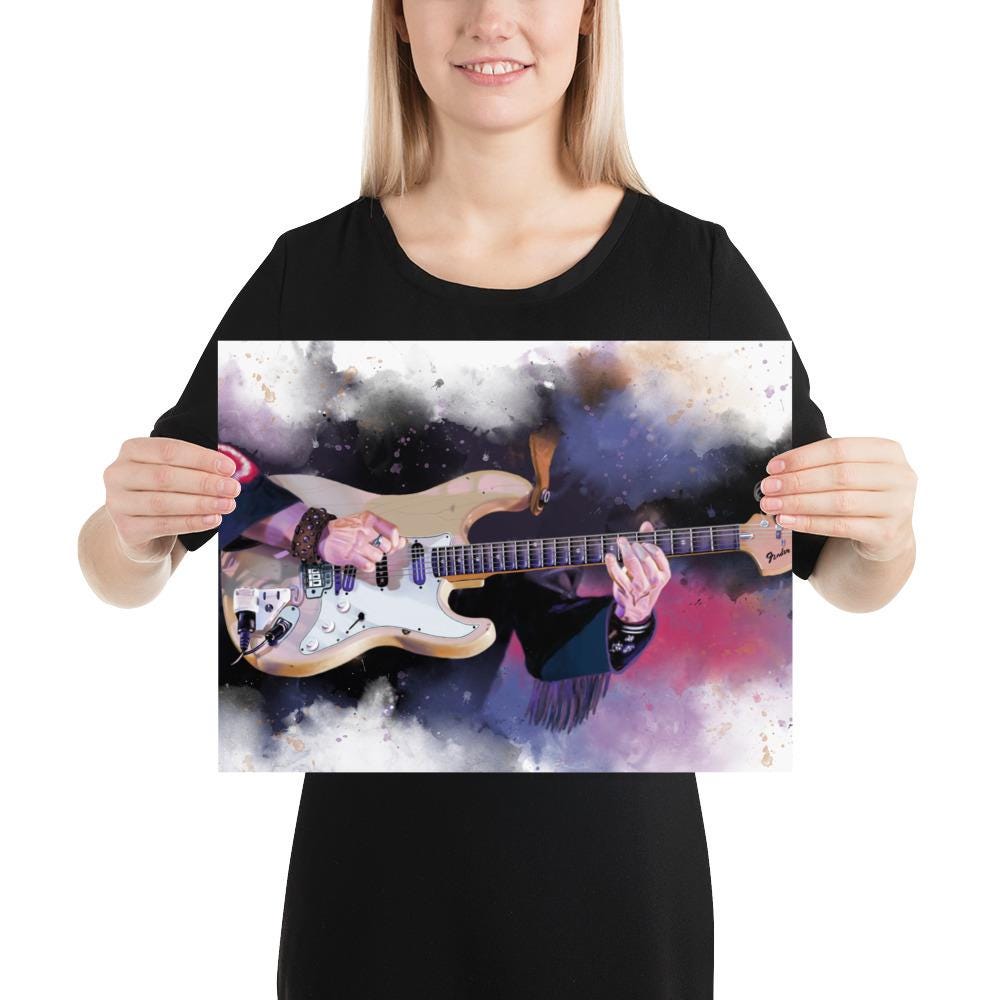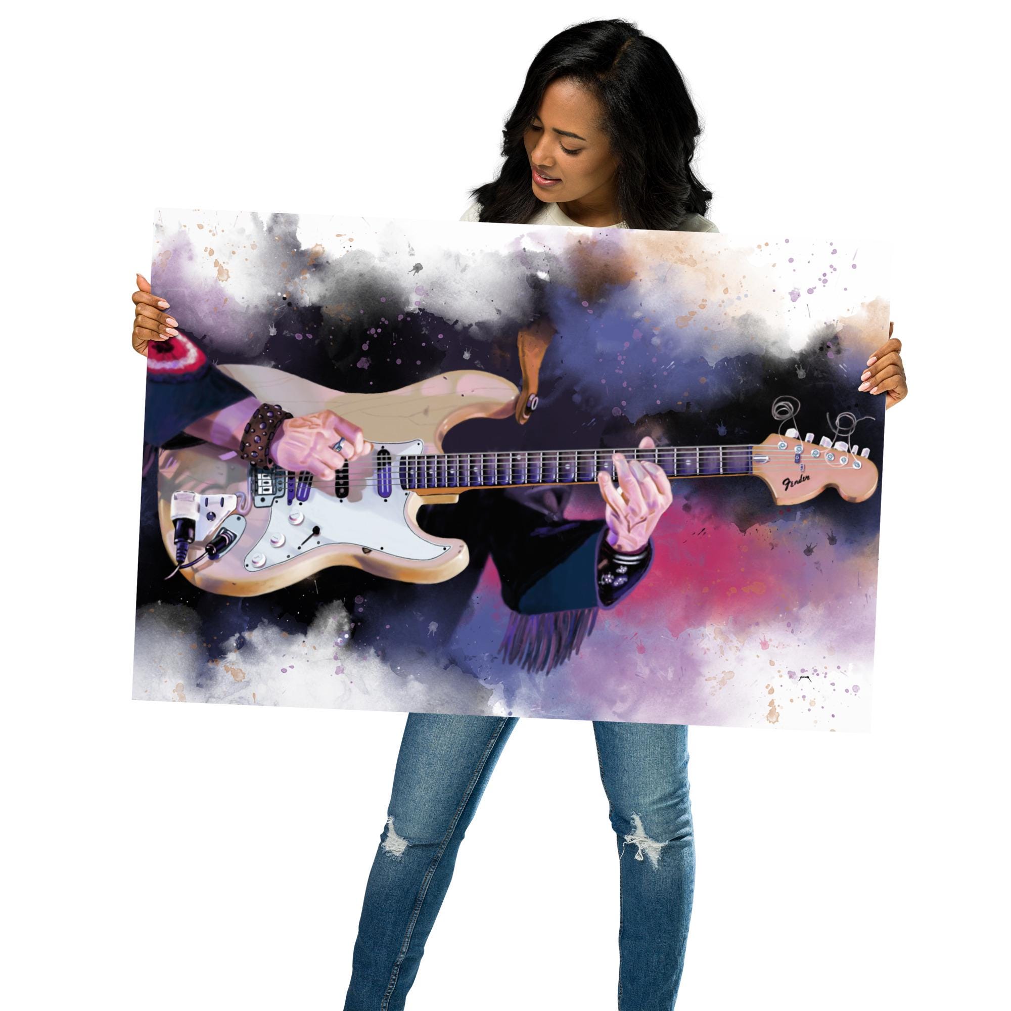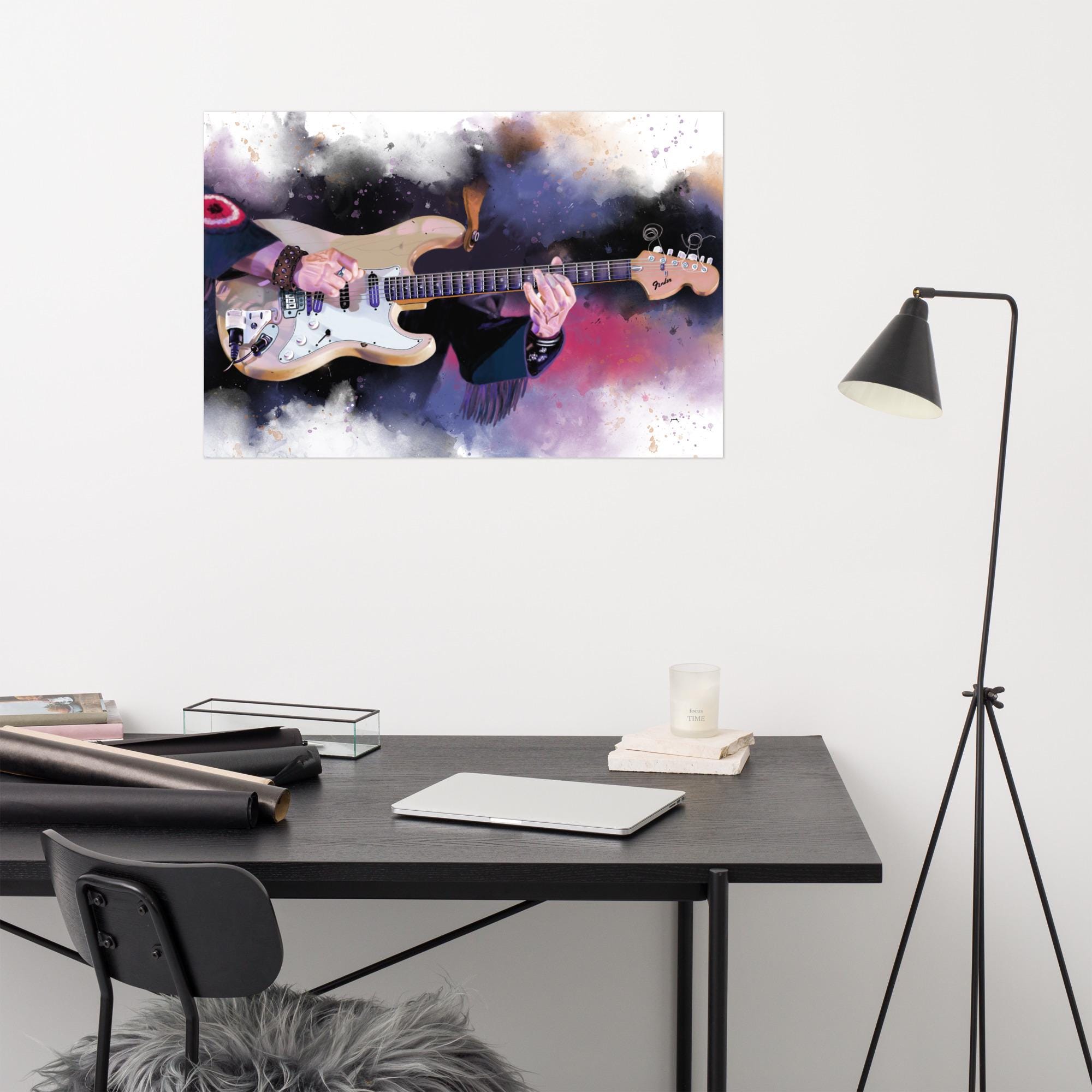 Crafted with the highest quality materials, my matte paper print boasts superior durability and longevity, ensuring that the artwork remains vibrant and captivating for years to come. The high-resolution printing technique captures every nuance of the original painting, from the graceful curves of the electric guitar to the subtle textures of the matte paper.