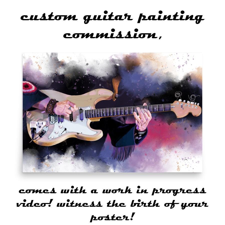 My creative process involves a thorough focus on detail to ensure exceptional quality. As an added touch, I document the entire painting process and present it to you as a gift, providing you with the opportunity to witness the birth of your personalized artwork. Whether you are a connoisseur of bass guitars, an enthusiast of electric guitars in search of a truly exceptional piece, or a family member seeking a memorable personalized gift for guitarist or a music teacher gift, this custom guitar art is the ideal choice. Transform your musical space with this exclusive, personalized art commission.